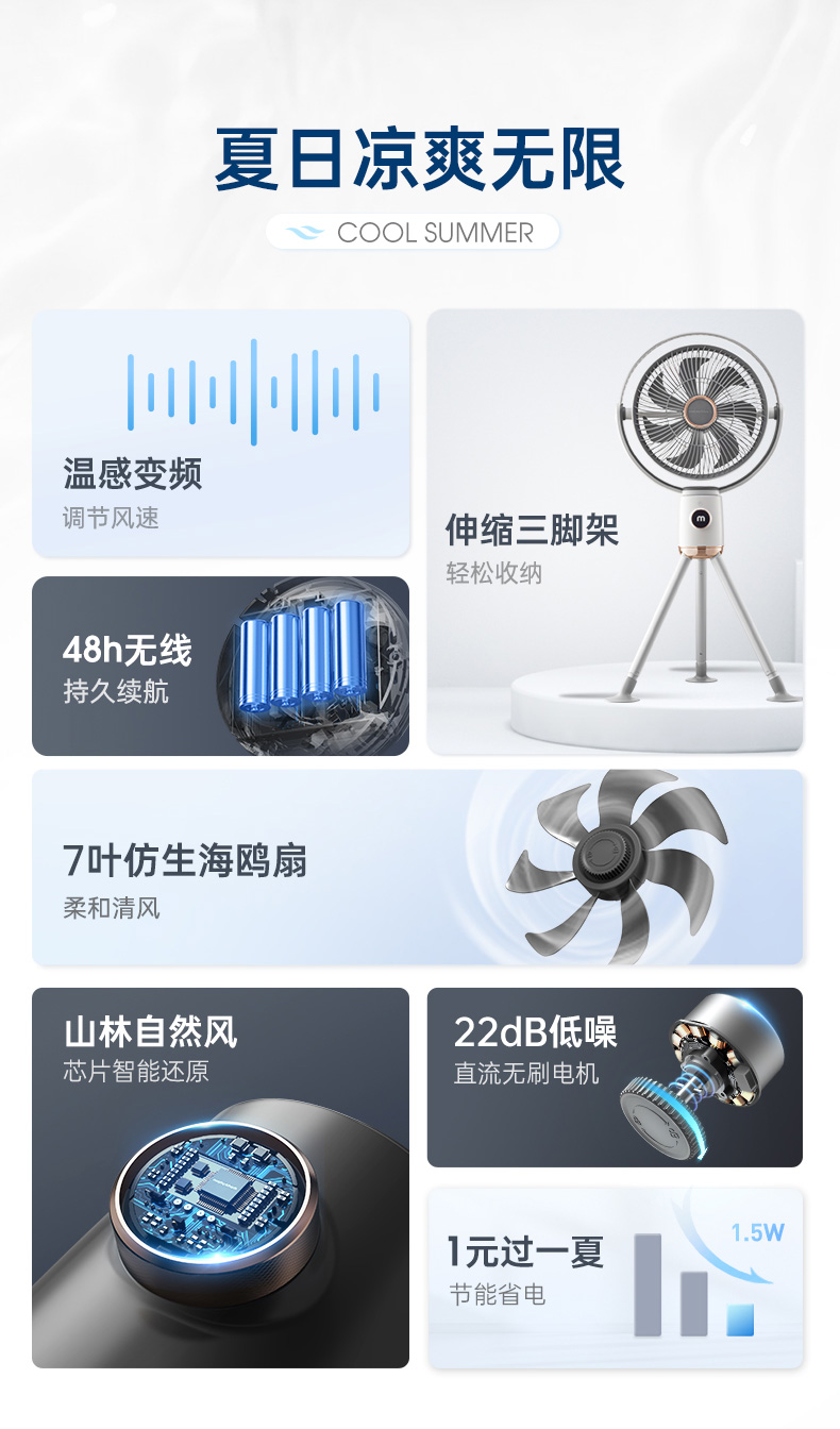 摩飞(Morphyrichards)电风扇落地扇家用无线七叶落地扇轻音风扇立式家用电扇MR3700